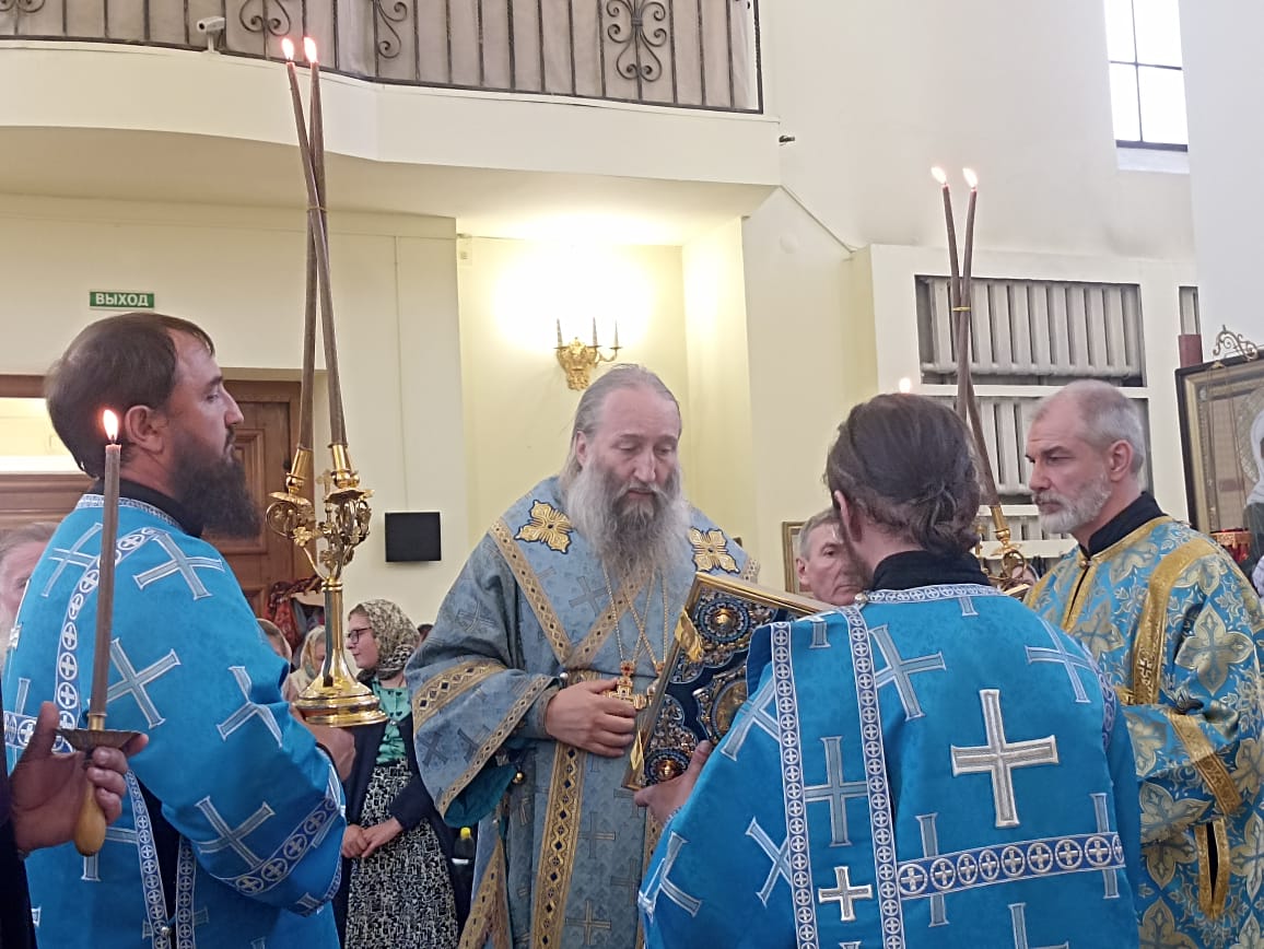Его Преосвященству сослужили иерей Владимир Пыжиков, иерей Кирилл Зиновьев и иеродиакон Досифей (Зыков).