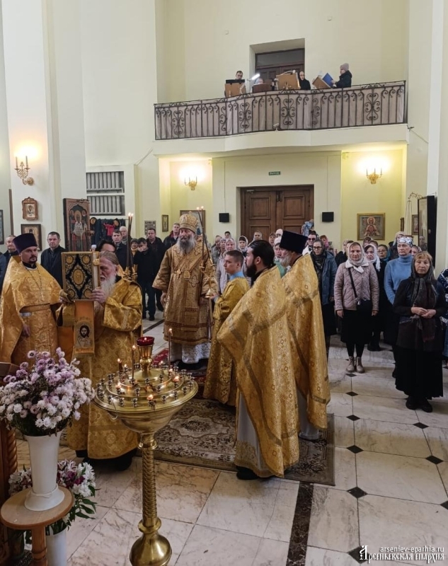 26 октября 2025 года, в Неделю 20-ю по Пятидесятнице, день памяти святых отцов VII Вселенского Собора и Иверской иконы Божией Матери, Его Преосвященство, Преосвященнейший Гурий, епископ Арсеньевский и Дальнегорский совершил Божественную литургию в Кафедральном Благовещенском соборе г. Арсеньева. Ему сослужили протоиерей Игорь Шевчук, иерей Александр Ступа, иеромонах Власий (Афанасьев), иерей Владимир Пыжиков, иерей Кирилл Зиновьев и диакон Анатолий Яндюк. Накануне вечером было отслужено Всенощное бдение.Богослужебные песнопения исполнил хор сестер монашеской женской общины под управлением регента Аллы Авериной. В этот день многие сподобились причаститься Святых Христовых Таин.