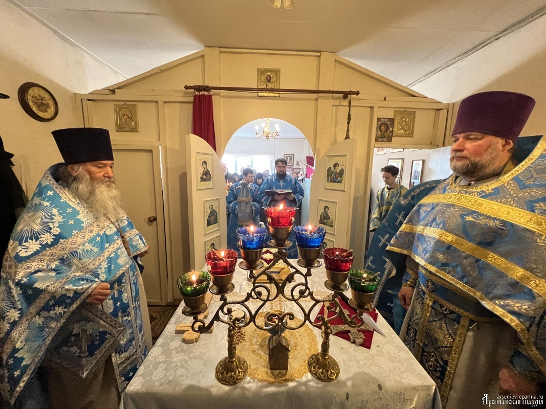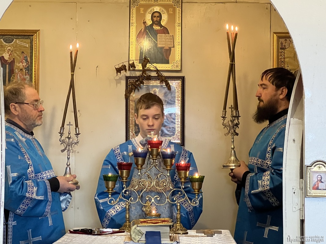 На следующий день владыка Гурий возглавил Божественную литургию в храме иконы Божией Матери «Державная» п. Горнореченский в сослужении настоятеля храма протоиерея Александра Сулемы, иерея Алексия Куник и иеродиакона Досифея (Зыкова).