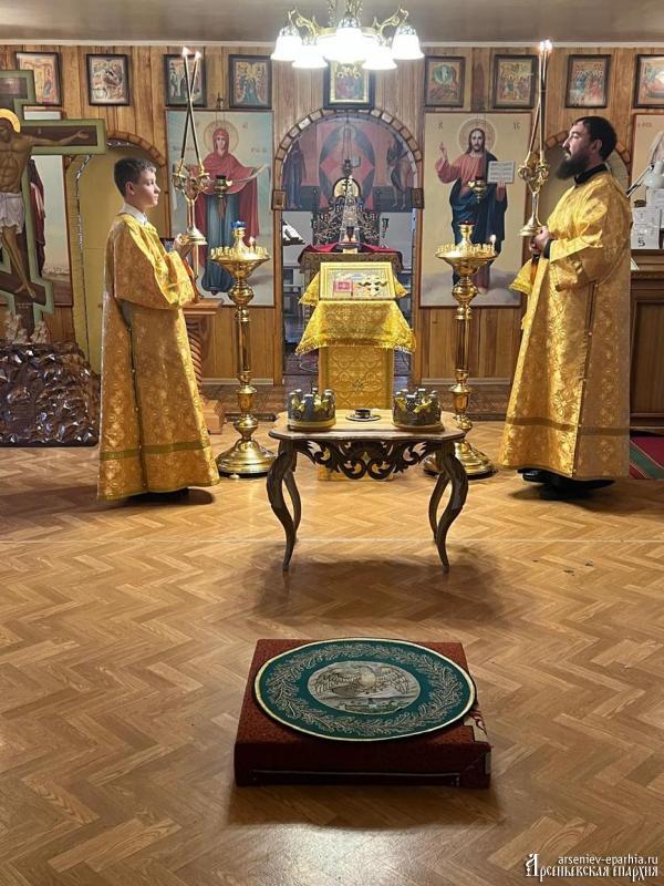 В этот день епископ Арсеньевский и Дальнегорский Гурий совершил Таинство Венчания, соединив церковным браком Сергея и Ларису Колодей, члена Русского Географического общества, историка Арсеньевской епархии. Владыке Гурию сослужил иеродиакон Досифей (Зыков). По окончании епископ Гурий вручил Сергею и Ларисе иконы Спасителя и Божией Матери и поздравил венчанную семью с особым событием в их жизни, пожелал научиться вместе переживать и радости и испытания и во всём доверять Богу.