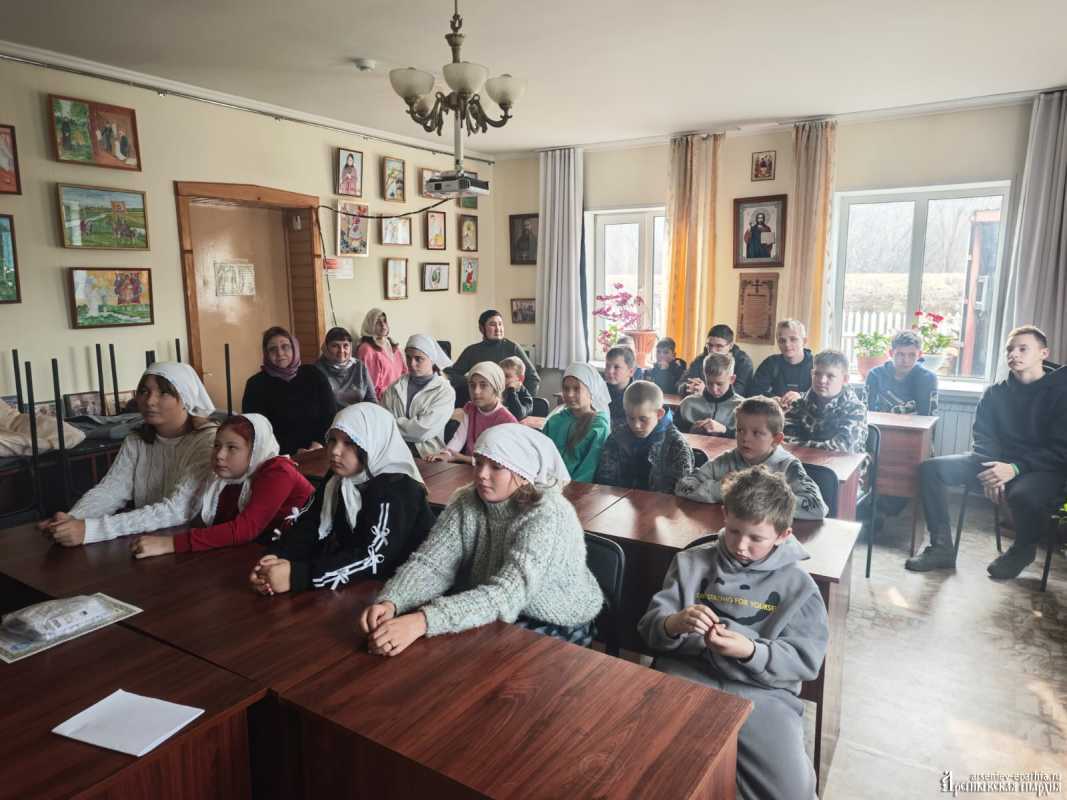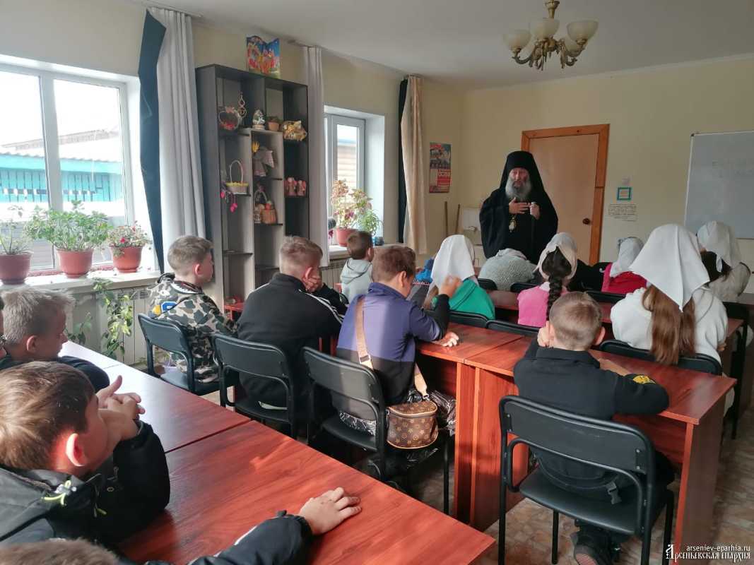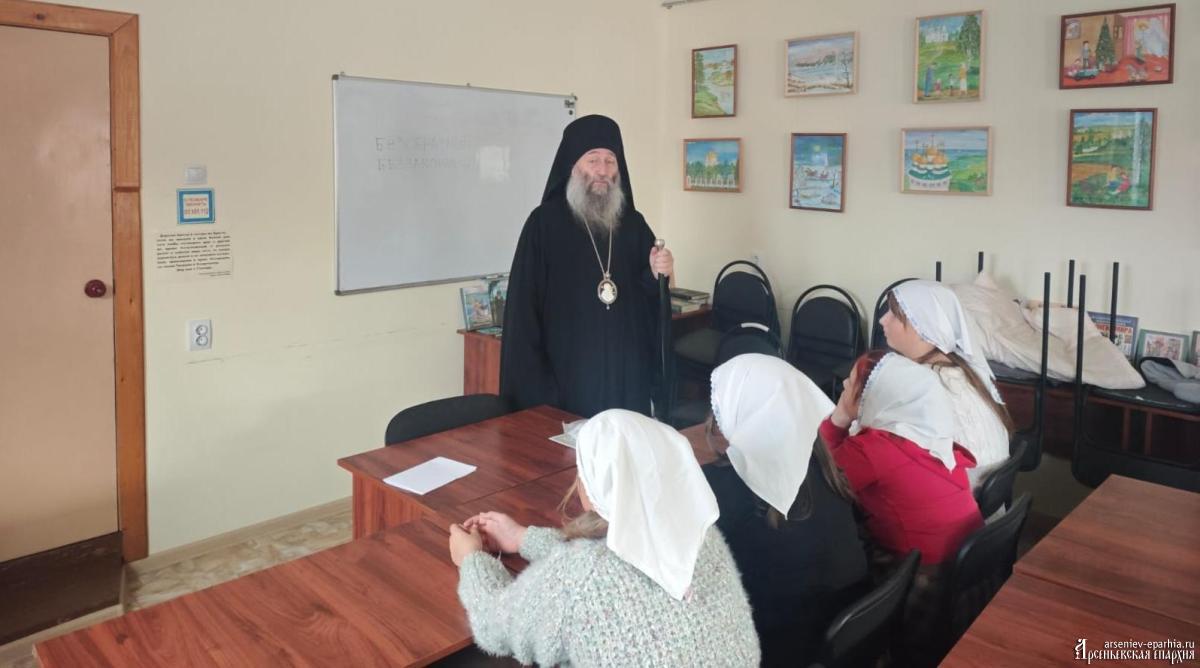 Также владыка Гурий встретился с воспитанниками воскресной школы при храме Покрова Божией Матери. Владыка поговорил с детьми о различных видах законов: от государственных до религиозных заповедей и духовных принципов. Рассказал о том, в чём состоит образ Божий в человеке и какими душевными качествами должен человек обладать, чтобы достичь подобия Божьего. Беседа прошла в форме дружественного диалога. В процессе общения ученики задавали свои вопросы. Владыка подробно и в доступной форме ответил на них.