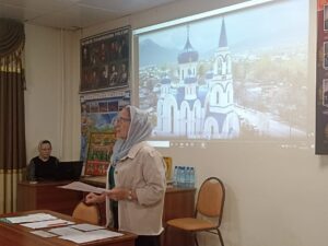 Ирина Геннадьевна Бердникова, руководитель ОРОиК Арсеньевской епархии, представила презентацию «Как писали наши предки».