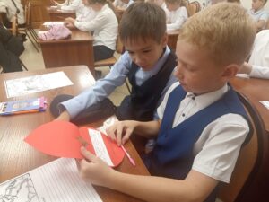 На занятиях Ирина Геннадьевна Бердникова, руководитель ОРОиК Арсеньевской епархии, поговорила с ребятами о семейных ценностях, о том, что такое жертвенная любовь: Феврония пожертвовала своей жизнью ради спасения души Петра, а Петр ради супруги – княжеской властью и богатством.