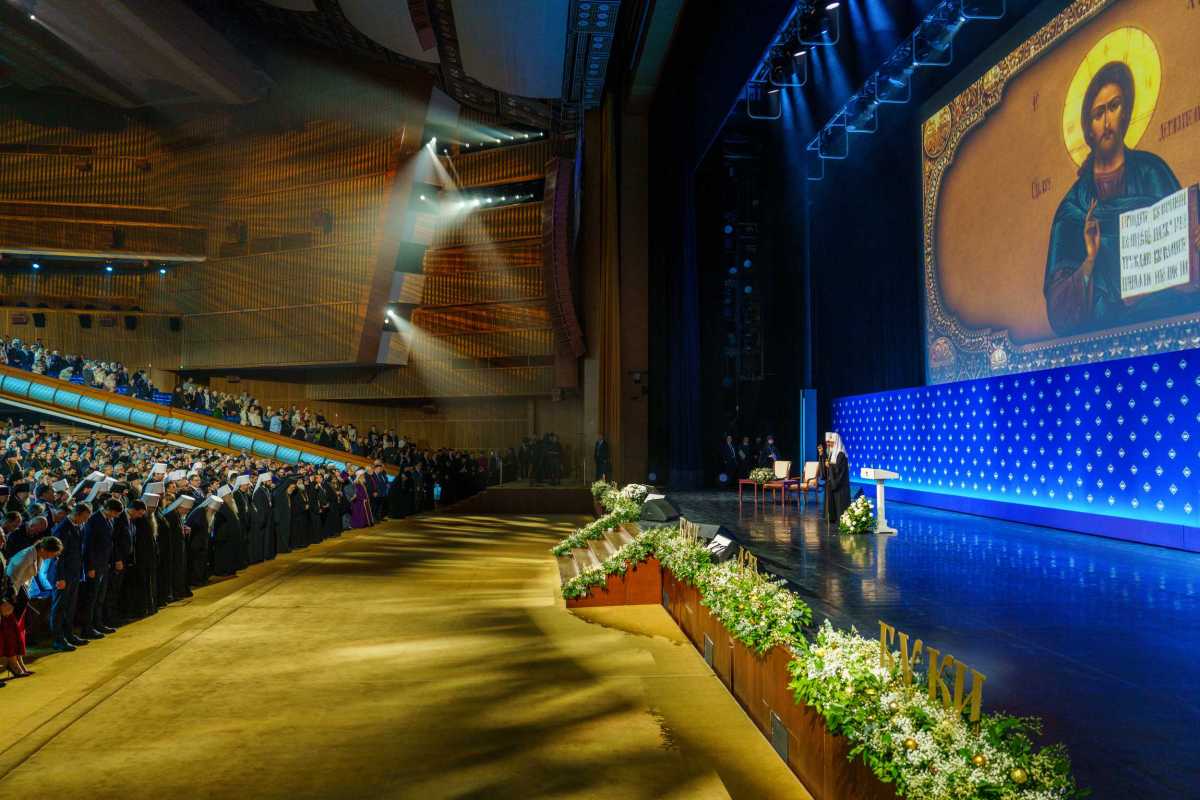 В зале Государственного Кремлёвского дворца собралось свыше 5 тысяч человек: Преосвященные архипастыри – члены Священного Синода и Высшего Церковного Совета, главы экзархатов, митрополий и епархиальные архиереи Русской Православной Церкви, представители Поместных Православных Церквей, члены Межрелигиозного совета России,
