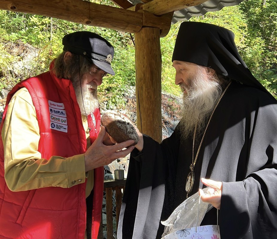 Из парка отправились к месту старта у скалы Дерсу Узала, но прежде заехали к роднику Благодатный. С удовольствием осмотрели территорию, помечтали о том, что тут ещё можно сделать хорошего. Фёдор Филиппович умылся чистой родниковой водой. Епископ Гурий подарил отцу Феодору ржаной хлеб по старинному рецепту в дальнюю дорогу.
