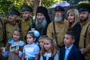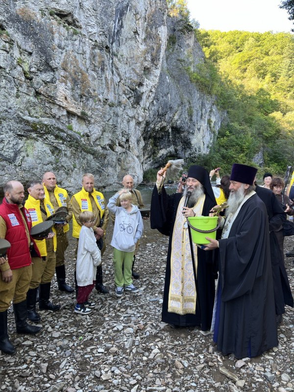 И уже оттуда все отправились к величественной скале, к месту старта. Епископ Гурий благословил участников экспедиции. Затем путешественники, одетые в костюмы времён начала ХХ века, как у великого путешественника и его казачьего отряда, отправились в дорогу в Тернейский район, до Малой Кемы, строго следуя арсеньевскому маршруту.