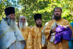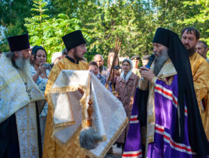 Владыка Гурий совершил молебен и чин освящения монумента в сослужении благочинного Кавалеровского благочиния протоиерея Александра Сулемы и иерея Виктора Бронникова. Затем в основание памятника заложили капсулу с посланием потомкам.