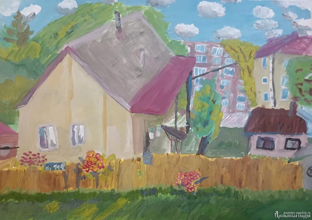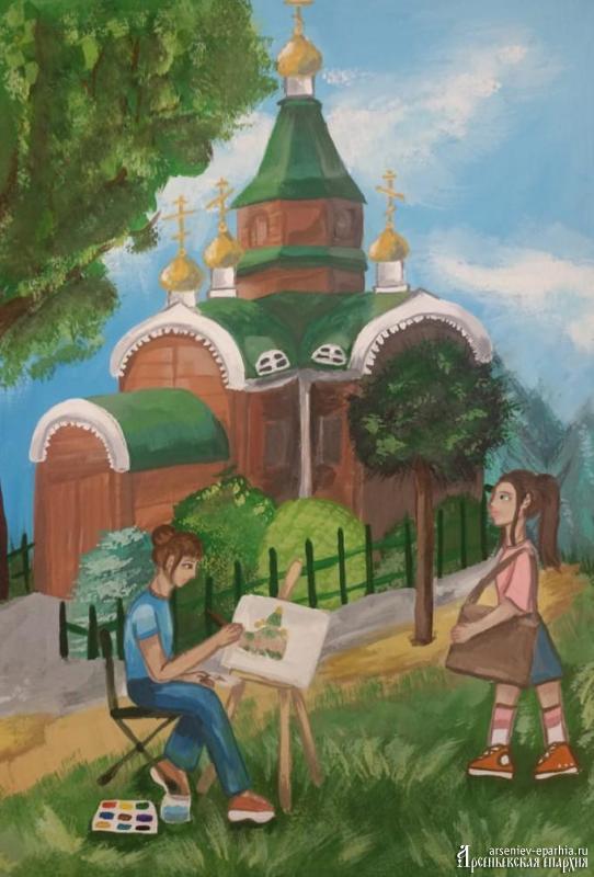 1 место – Бондаренко Анастасия (13 лет), «На пленэре. Мой любимый храм. Часовня св. блж. Ксении Петербургской. Кавалерово», пгт. Кавалерово;
