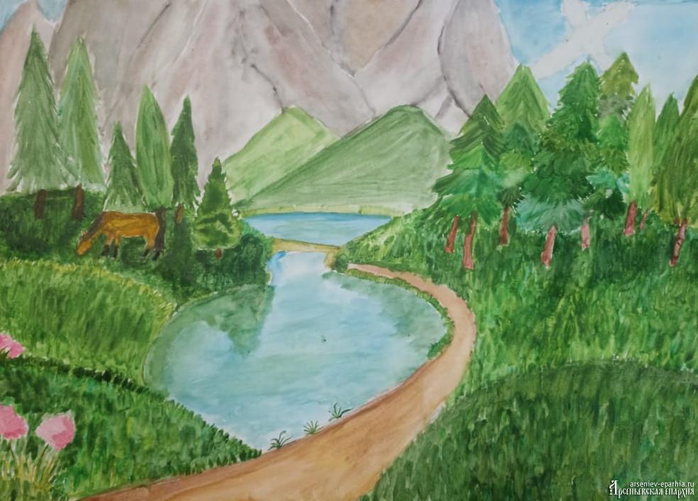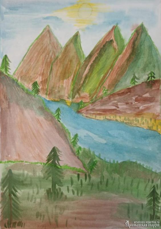 3 место – Мальгина Анна (14 лет), «Река у подножия гор», с. Новосысоевка Яковлевского района.