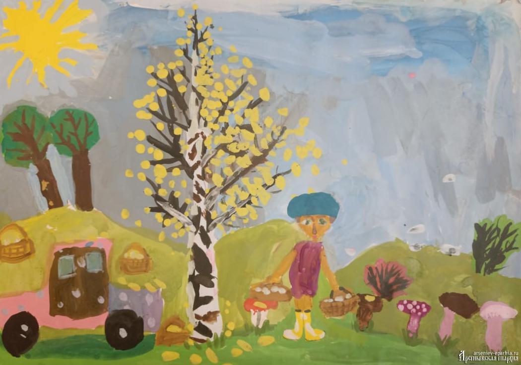 2 место – Бровина Есения, (7 лет), «По грибы», с. Новосысоевка Яковлевского района;