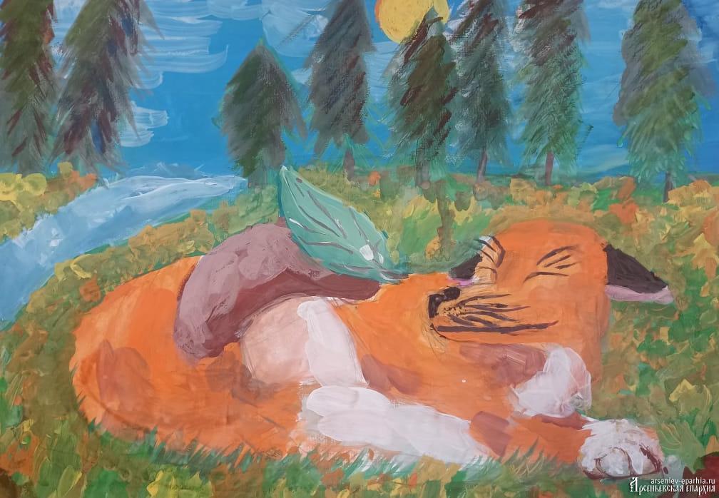 3 место – Бобрукевич Полина (12 лет), «Лисик греется на солнышке около леса» пгт. Кавалерово;