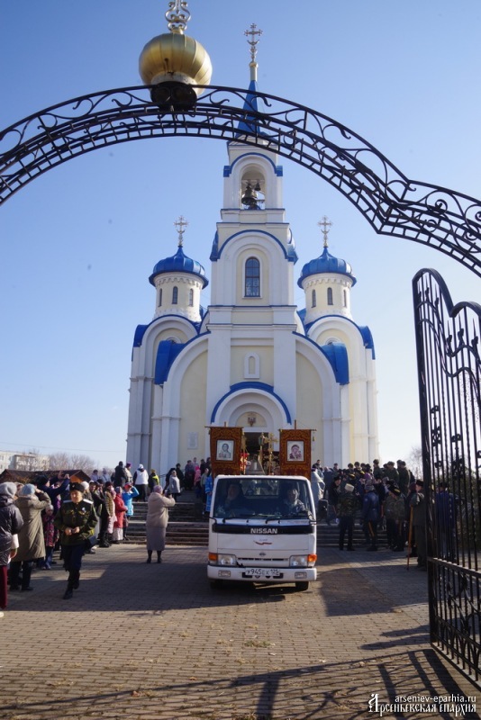 В этот день уже традиционно в г. Арсеньеве совершается большой Крестный ход от Кафедрального Благовещенского собора до площади ДК «Прогресс», где проходит праздничный молебен перед чудотворной иконой.