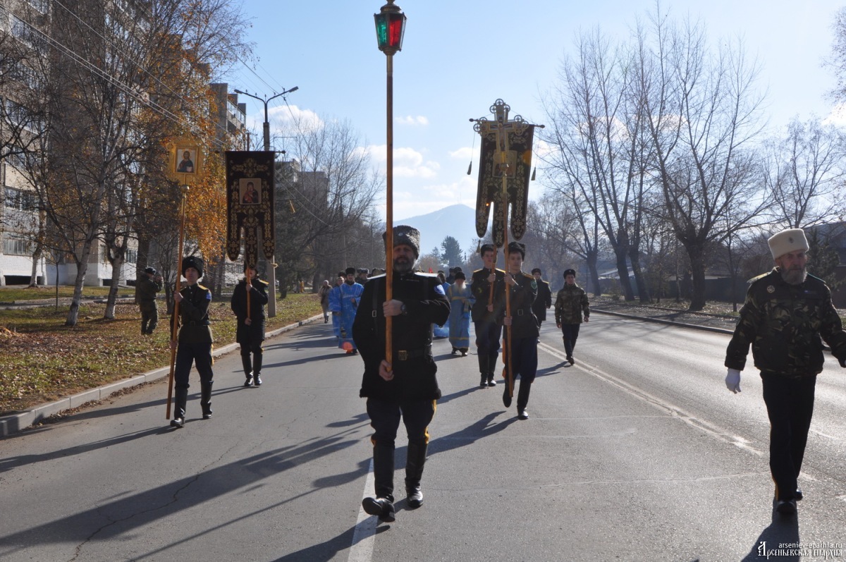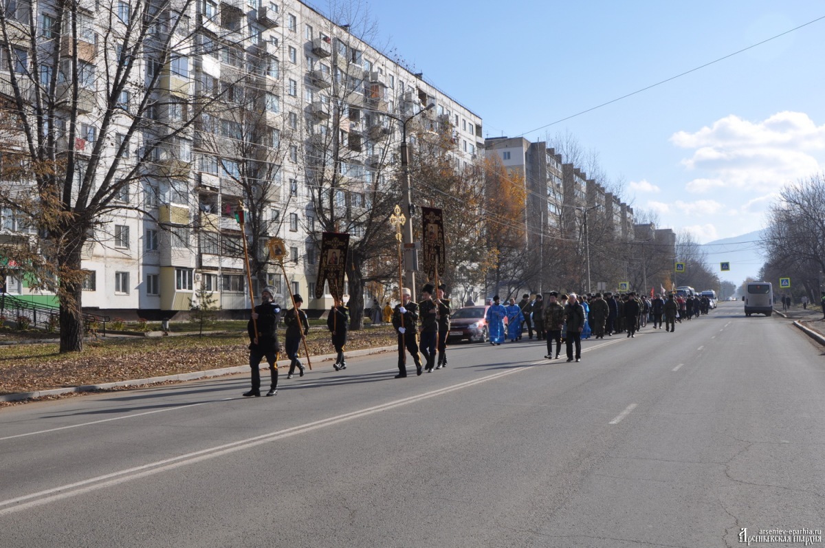 В молитвенном шествии приняли участие около 300 человек: священнослужители из разных приходов во главе с владыкой Гурием, сестры женской монашеской общины, представители общественных организаций, военные, казаки, дети воскресных школ города, прихожане храмов Арсеньевской епархии и жители. В первых рядах крестоходцев шли глава Арсеньевского городского округа Сергей Сергеевич Угаров и депутат городской Думы Александр Анатольевич Толстунов.