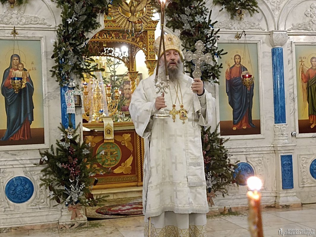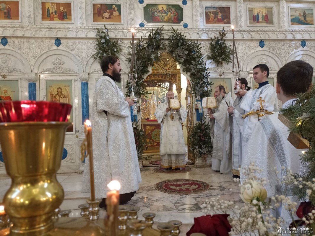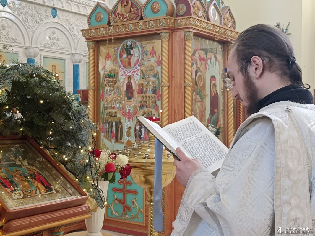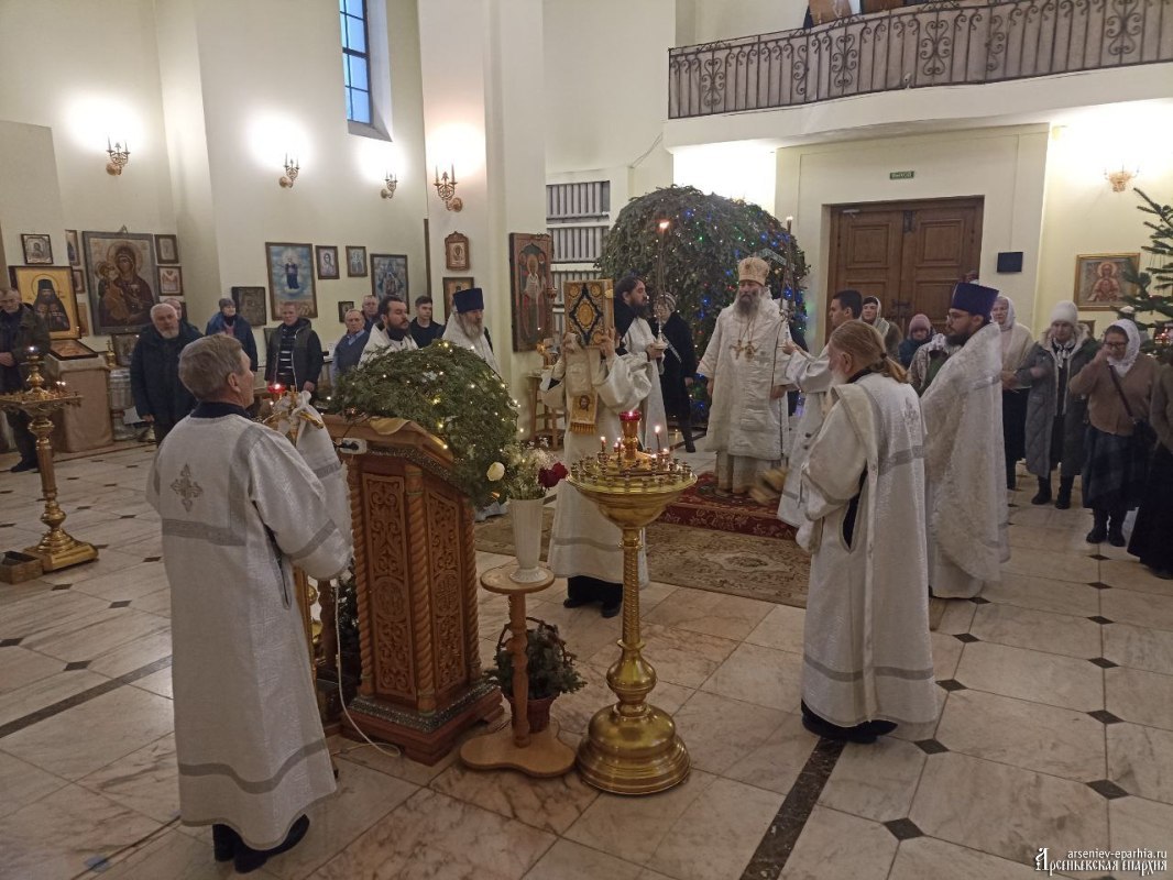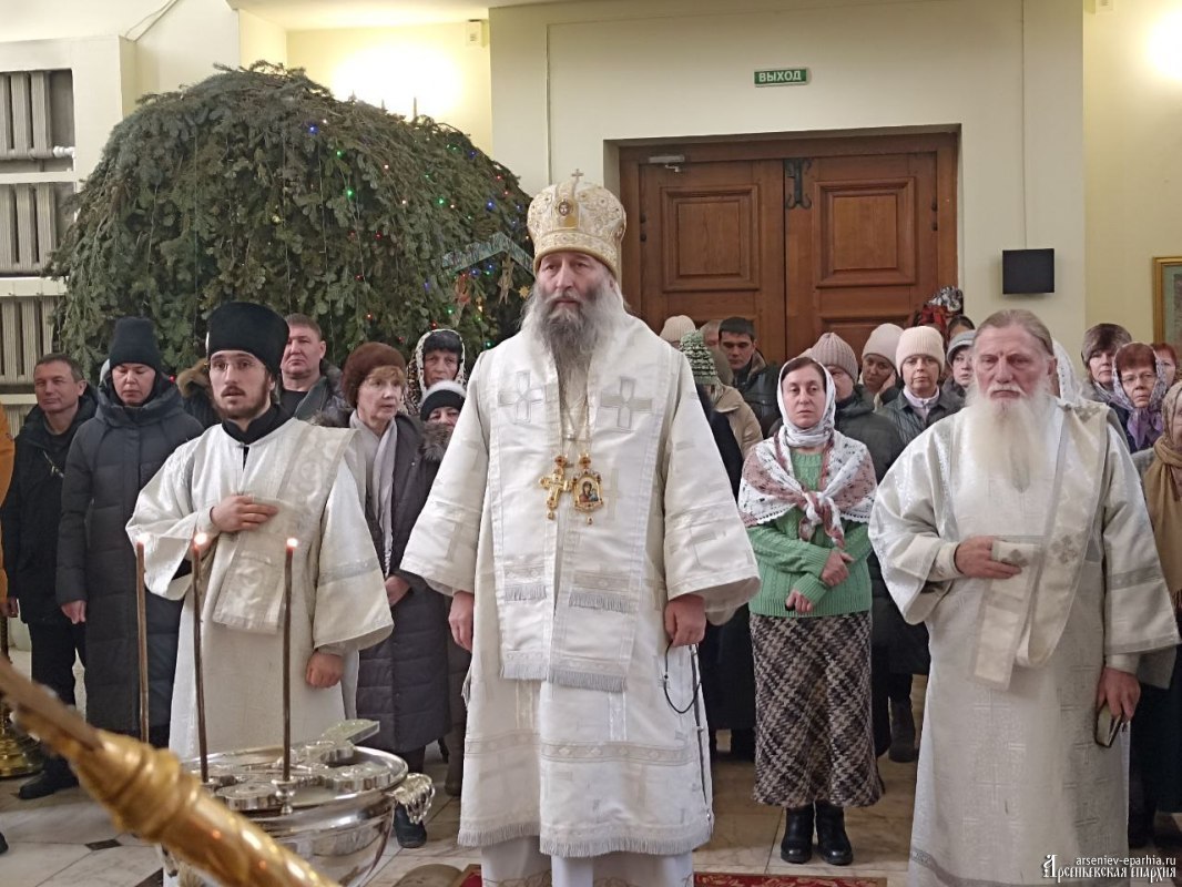 18 января 2025 года, в Неделю 32-ю по Пятидесятнице, в Навечерие Богоявления, Его Преосвященство, Преосвященнейший Гурий, епископ Арсеньевский и Дальнегорский, возглавил Божественную литургию, великую вечерню и чин Великого освящения воды в Кафедральном Благовещенском соборе г. Арсеньева.Его Преосвященству сослужили: протоиерей Игорь Шевчук, иерей Владимир Пыжиков, иеромонах Власий (Афанасьев), иерей Кирилл Зиновьев, иеродиакон Досифей (Зыков) и диакон Анатолий Яндюк.