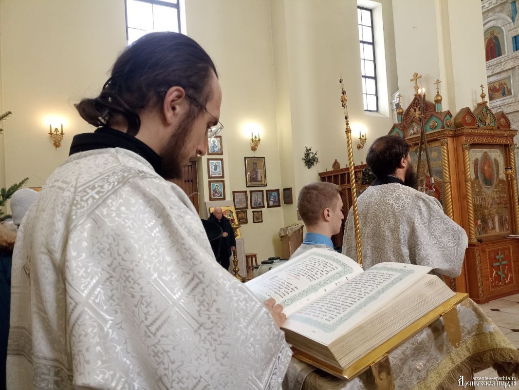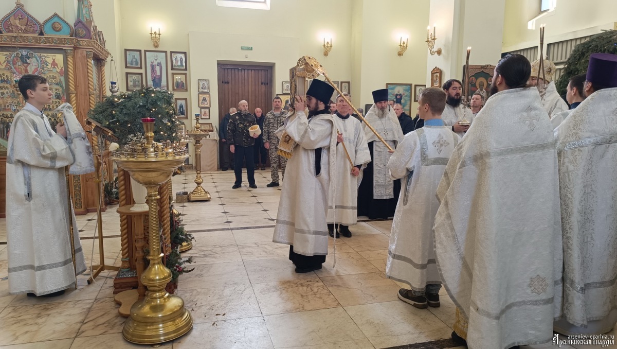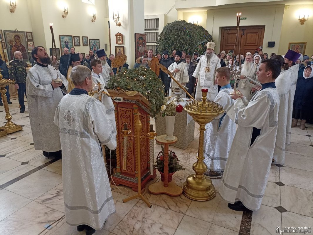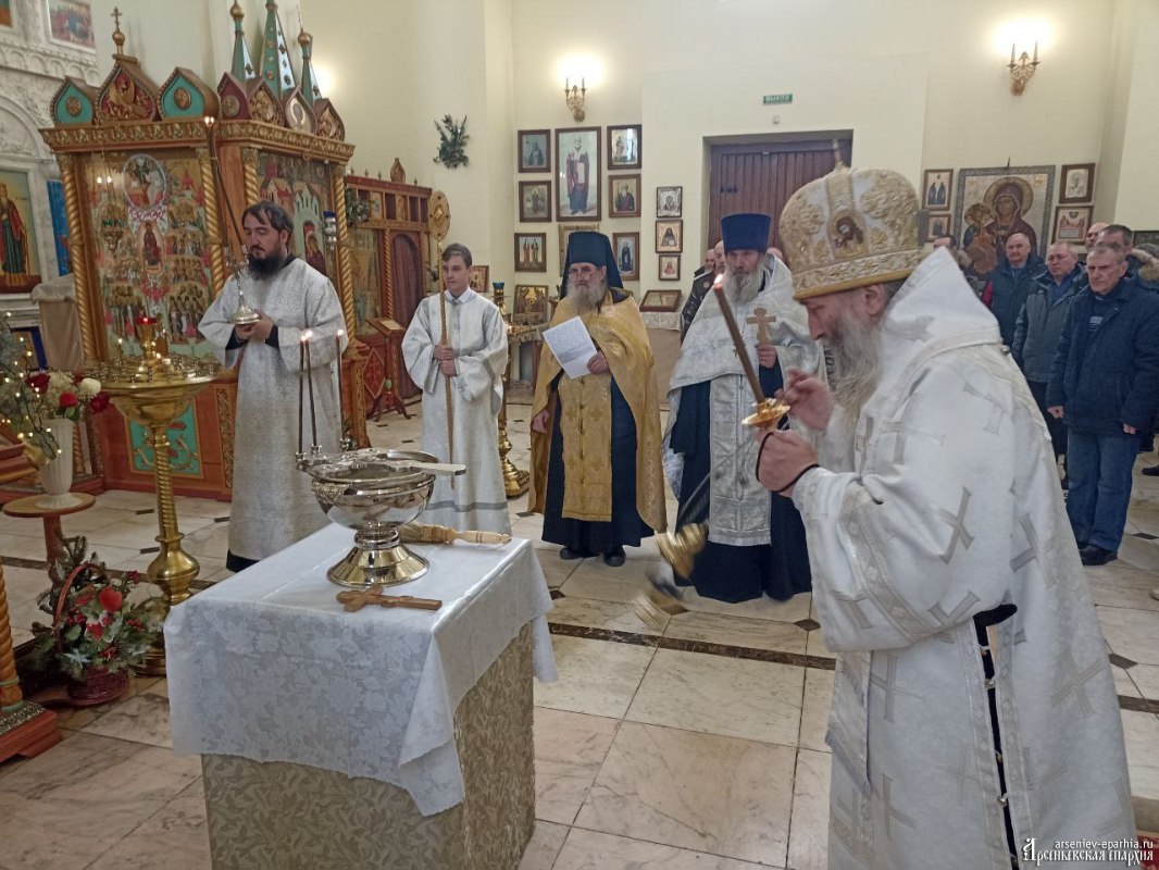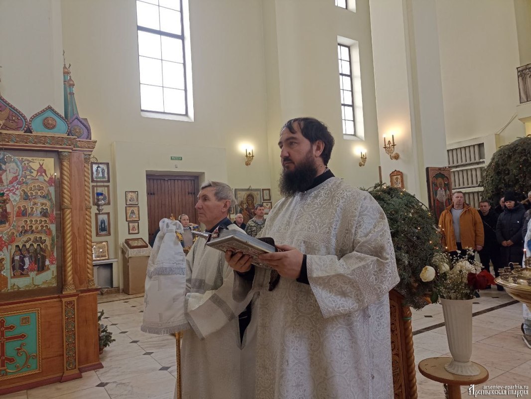 18 января 2025 года, в Неделю 32-ю по Пятидесятнице, в Навечерие Богоявления, Его Преосвященство, Преосвященнейший Гурий, епископ Арсеньевский и Дальнегорский, возглавил Божественную литургию, великую вечерню и чин Великого освящения воды в Кафедральном Благовещенском соборе г. Арсеньева.Его Преосвященству сослужили: протоиерей Игорь Шевчук, иерей Владимир Пыжиков, иеромонах Власий (Афанасьев), иерей Кирилл Зиновьев, иеродиакон Досифей (Зыков) и диакон Анатолий Яндюк.