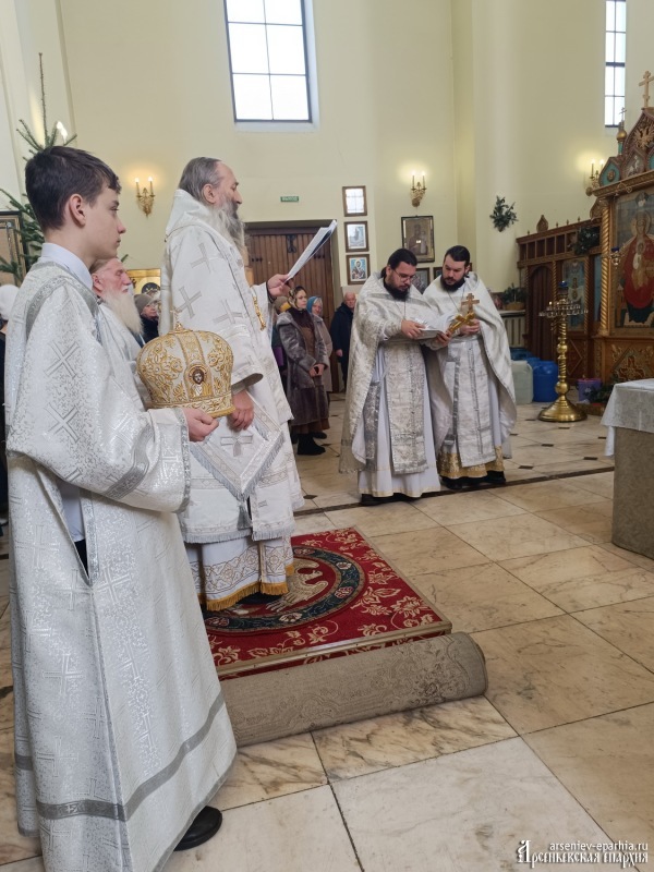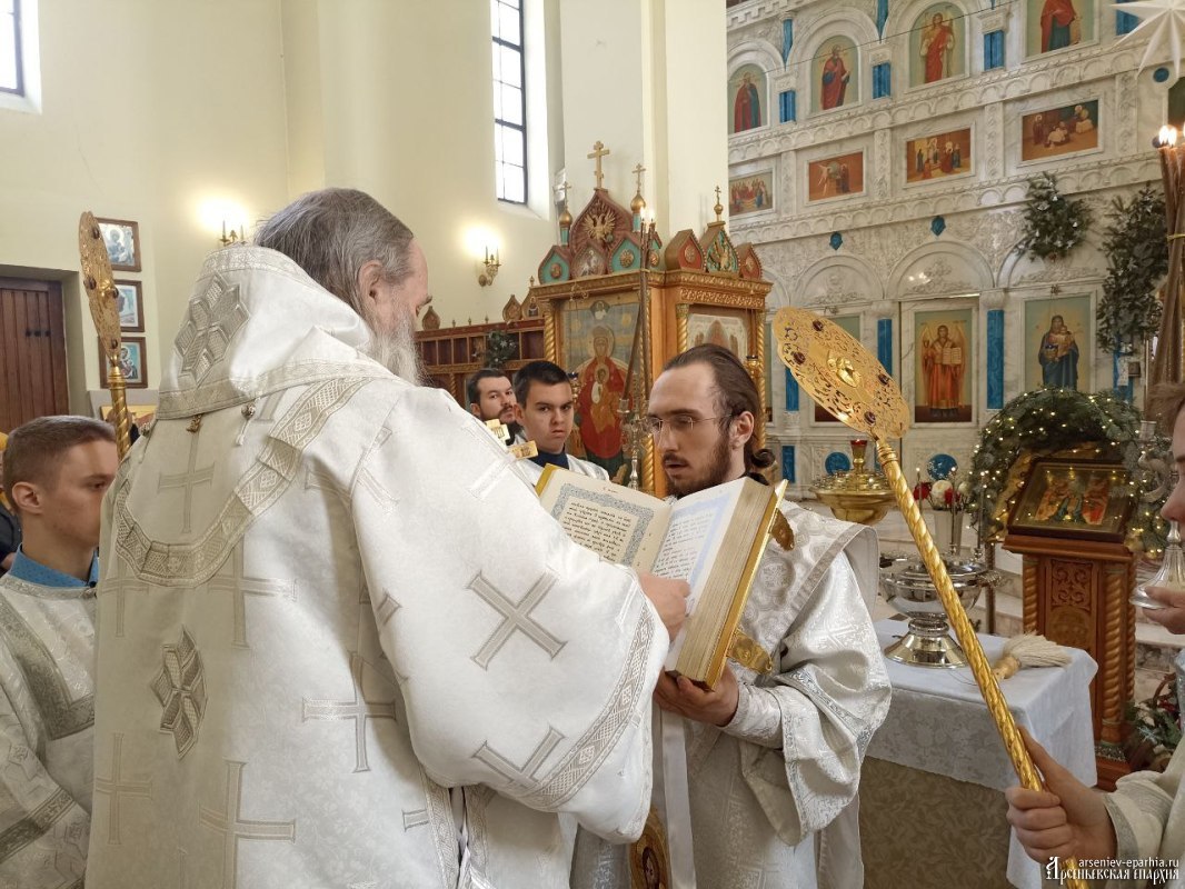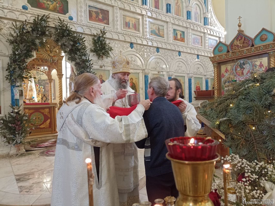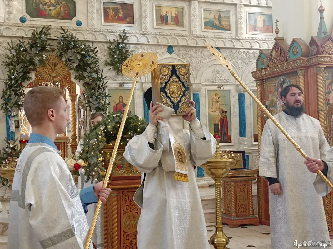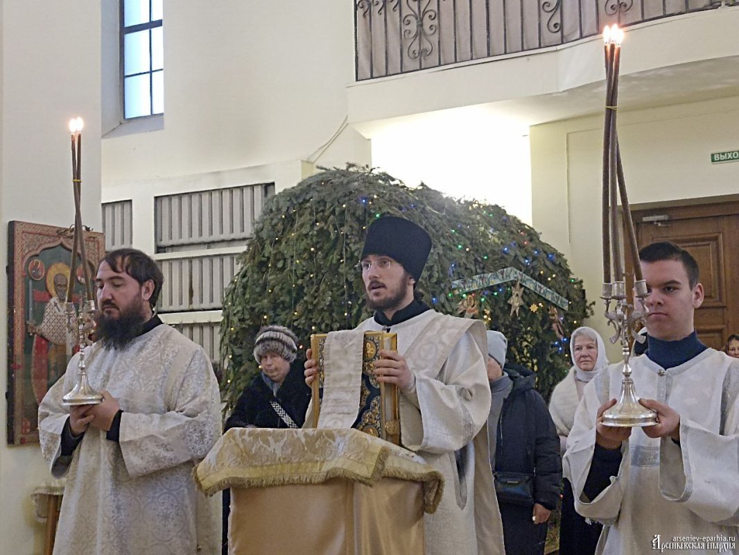 18 января 2025 года, в Неделю 32-ю по Пятидесятнице, в Навечерие Богоявления, Его Преосвященство, Преосвященнейший Гурий, епископ Арсеньевский и Дальнегорский, возглавил Божественную литургию, великую вечерню и чин Великого освящения воды в Кафедральном Благовещенском соборе г. Арсеньева.Его Преосвященству сослужили: протоиерей Игорь Шевчук, иерей Владимир Пыжиков, иеромонах Власий (Афанасьев), иерей Кирилл Зиновьев, иеродиакон Досифей (Зыков) и диакон Анатолий Яндюк.