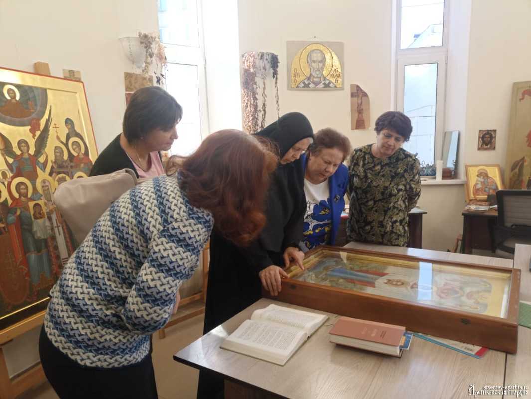 По окончании семинара педагоги посетили иконописную мастерскую, где познакомились с Порт-Артурской иконой Божией Матери «Торжество Православия», написанной сестрами женской монашеской общины Арсеньевской епархии.