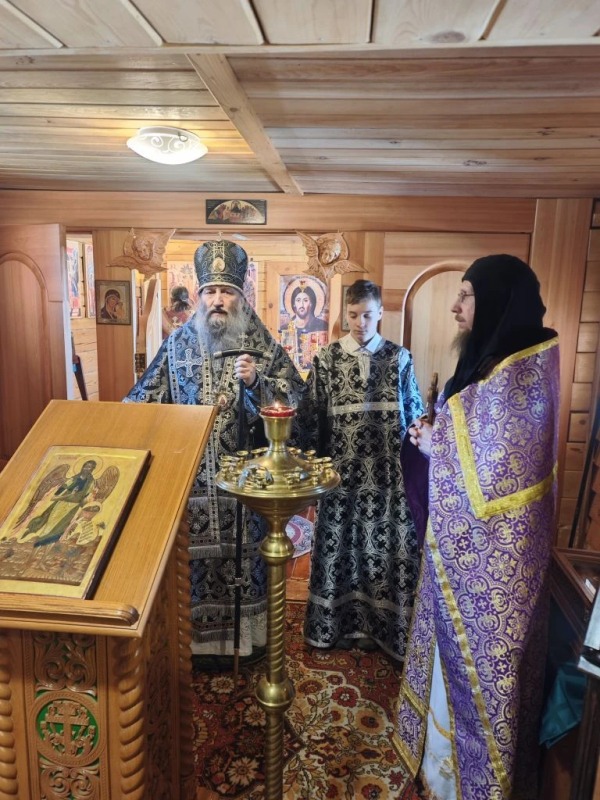 В этот значимый для обители престольный праздник архипастырь возглавил Литургию Преждеосвященных Даров. Правящему архиерею сослужили: иеромонах Варсонофий (Рыжов) и иеродиакон Матфей. Глубину и строгость Богослужения подчеркнуло молитвенное пение иеродиакона Досифея (Зыкова).