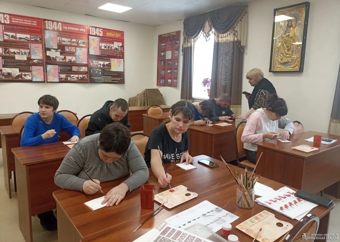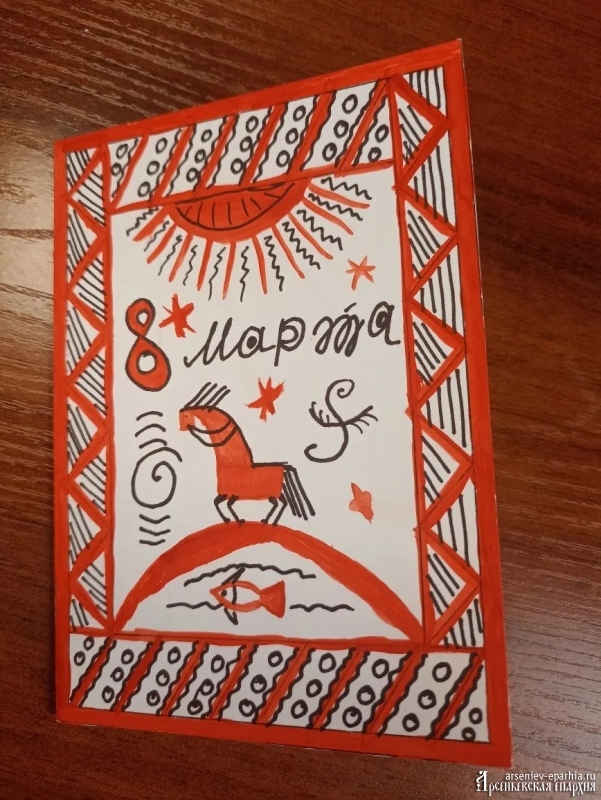 Наши подопечные психневрологического интерната г. Арсеньева продолжают осваивать Мезенскую роспись, и в этот раз результатом занятия стали авторские открытки.В руках проживающих «забегали» красные кони и «полетели» сказочные птицы.