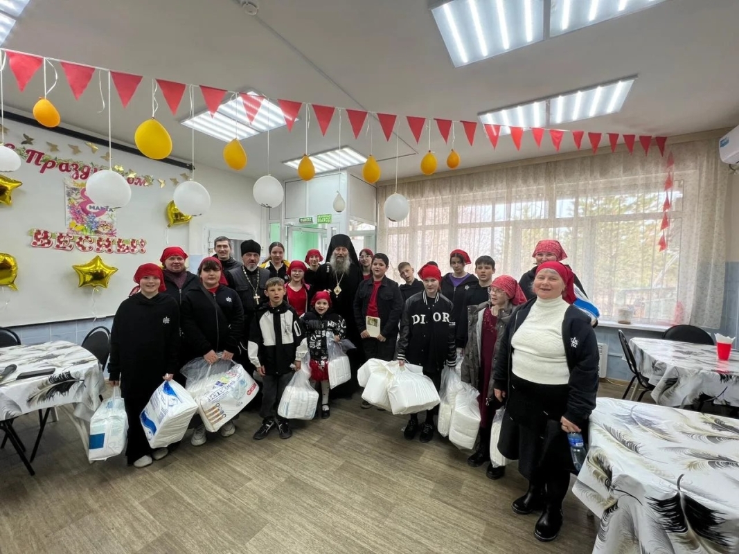 Владыка обратился к присутствующим с пастырским словом. В его речи звучали слова утешения, надежды и любви. Визит не ограничился лишь добрыми словами. Гости привезли с собой нужные и полезные подарки: средства личной гигиены и, конечно, праздничные сладости.