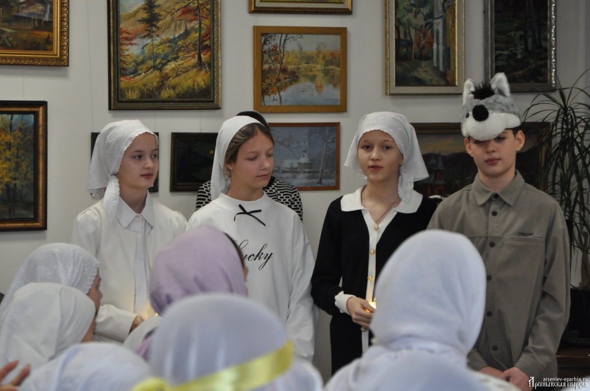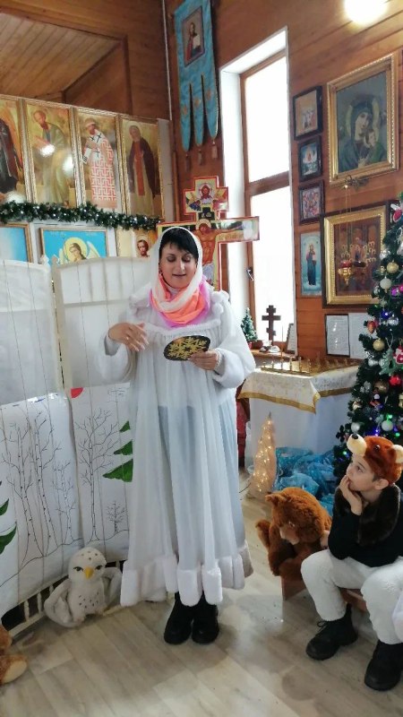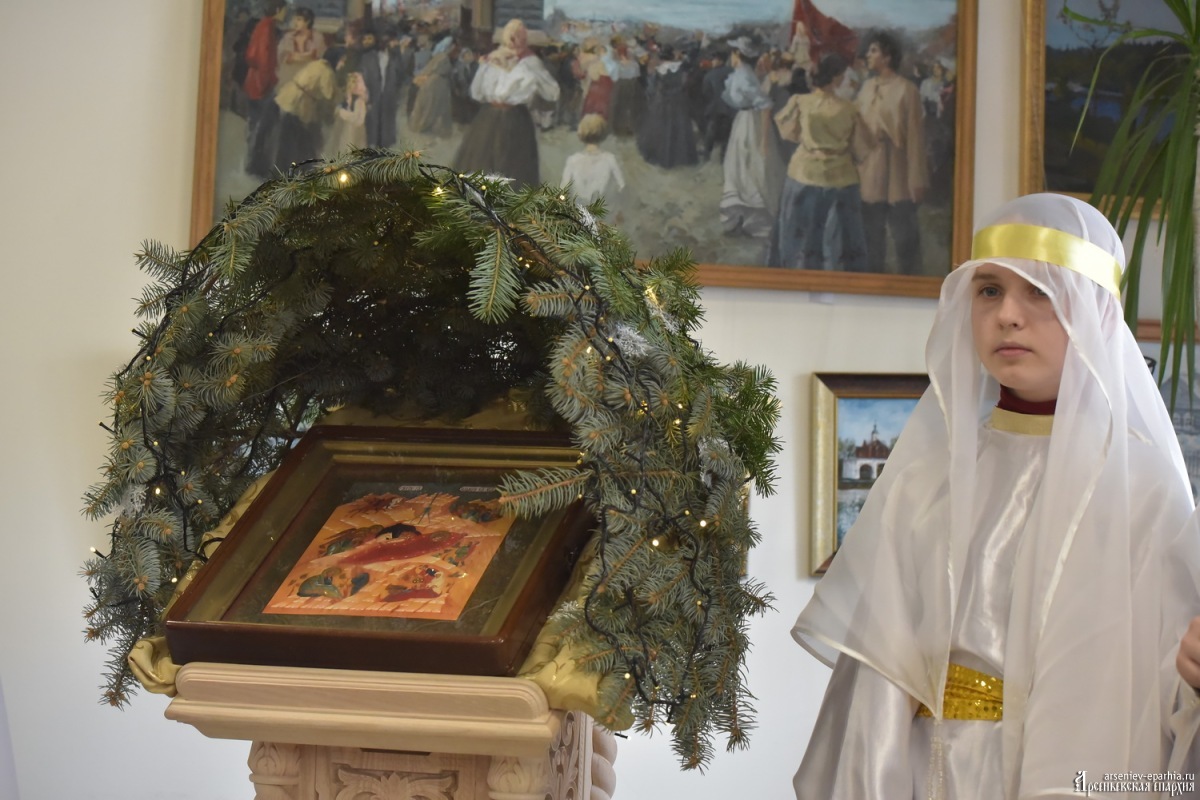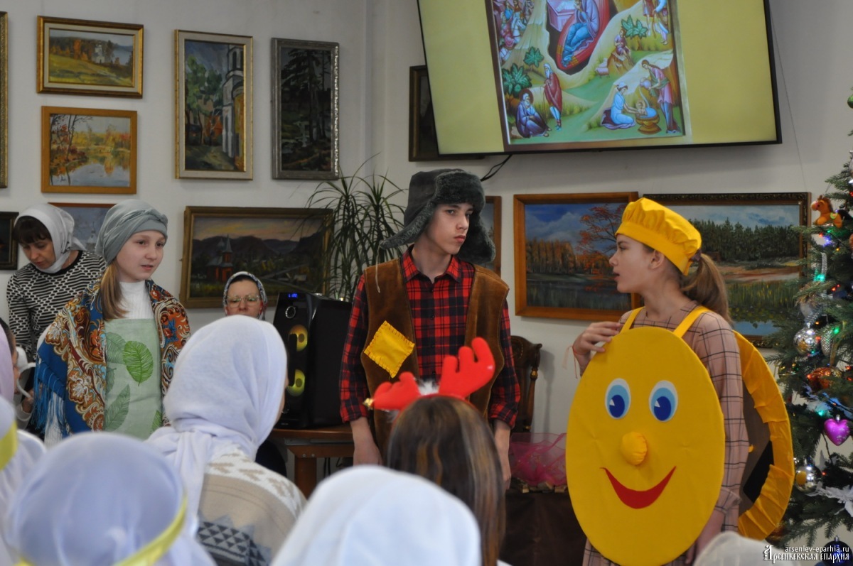 Ребята из воскресной школы при храме Архистратига Михаила под руководством матушки Христины Котенко прочитали стихи и спели песни, прославляющие пришедшего в мир Младенца Иисуса Христа, а также показали сценку «Рождественский колобок» с назидательным смыслом: об опасности непослушания и духовных соблазнов, подстерегающих христиан в миру.