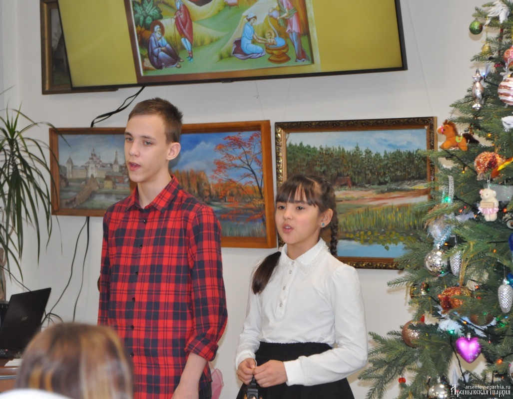 Воспитанники воскресной школы храма Рождества Христова (руководитель – матушка Любовь Ступа) выступили со стихами и колядками, раскрывающими смысл праздника.