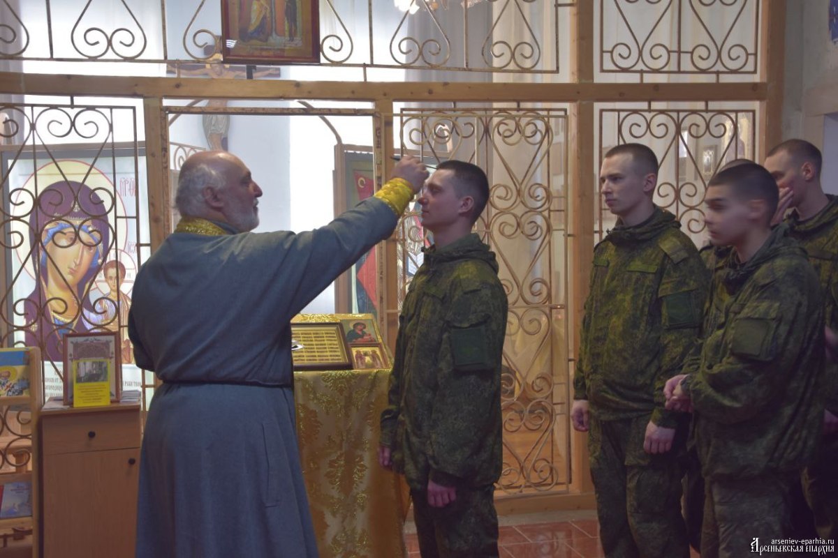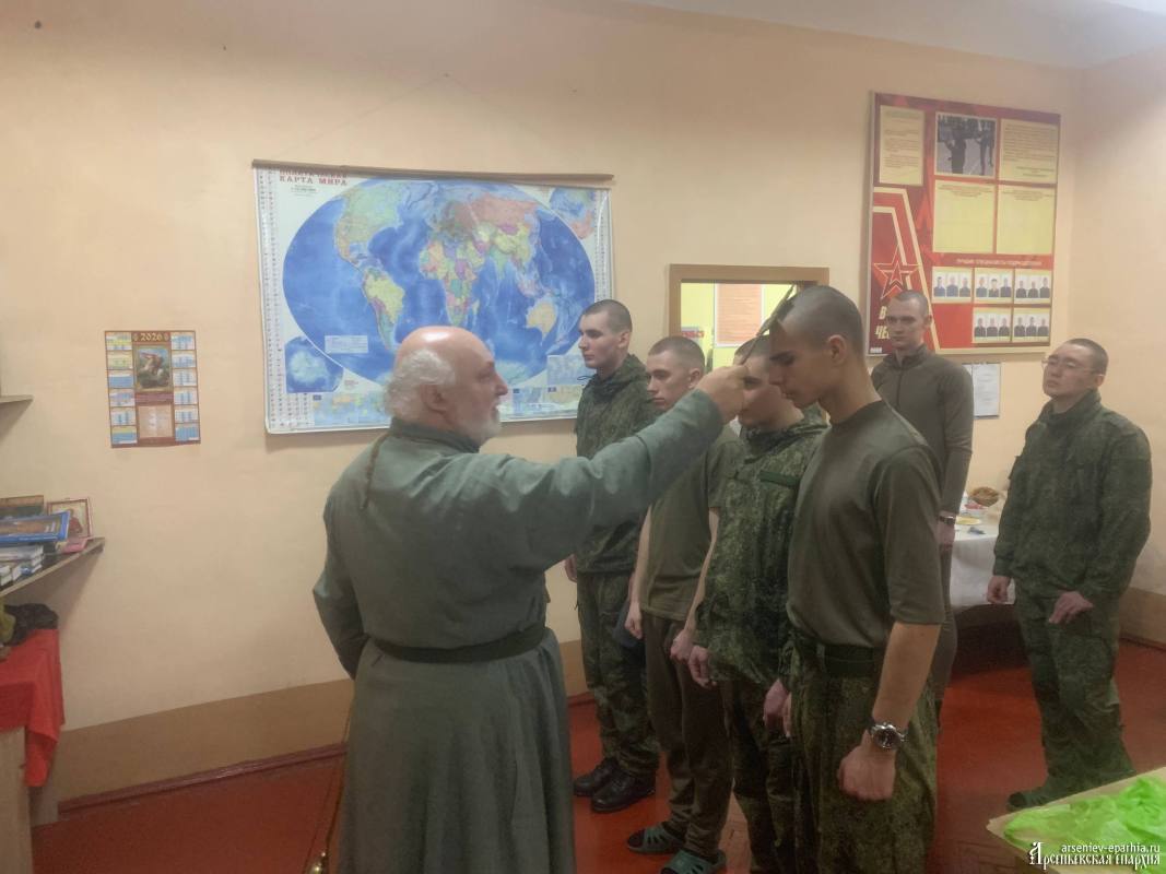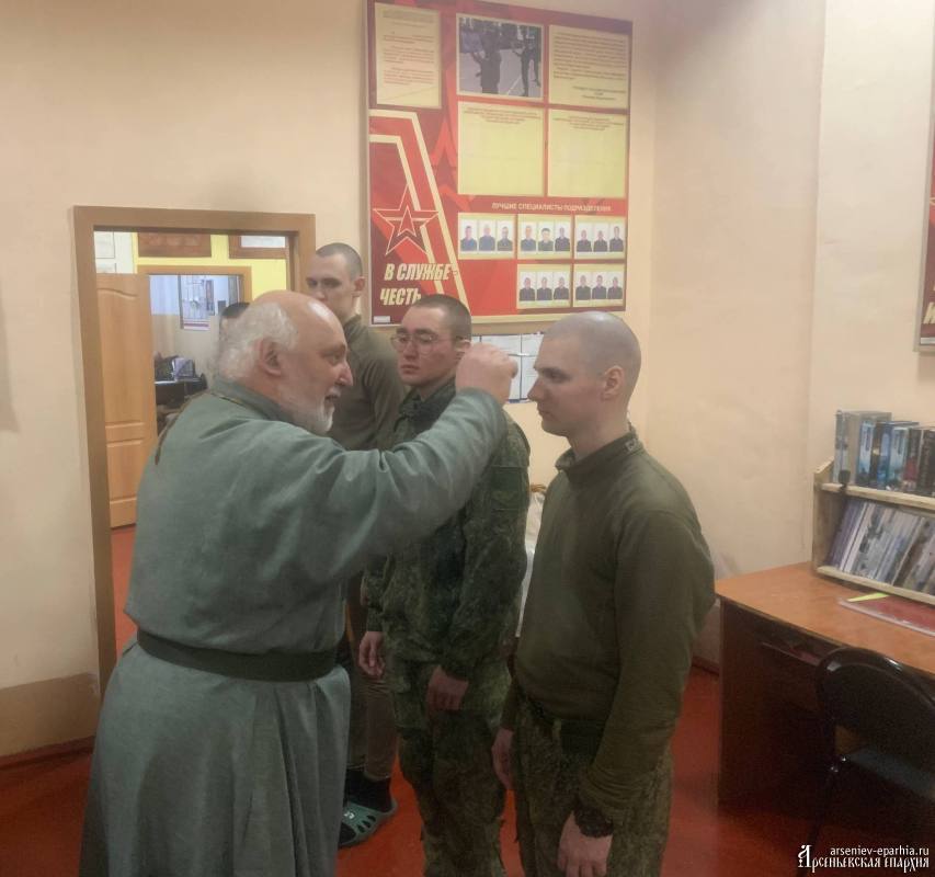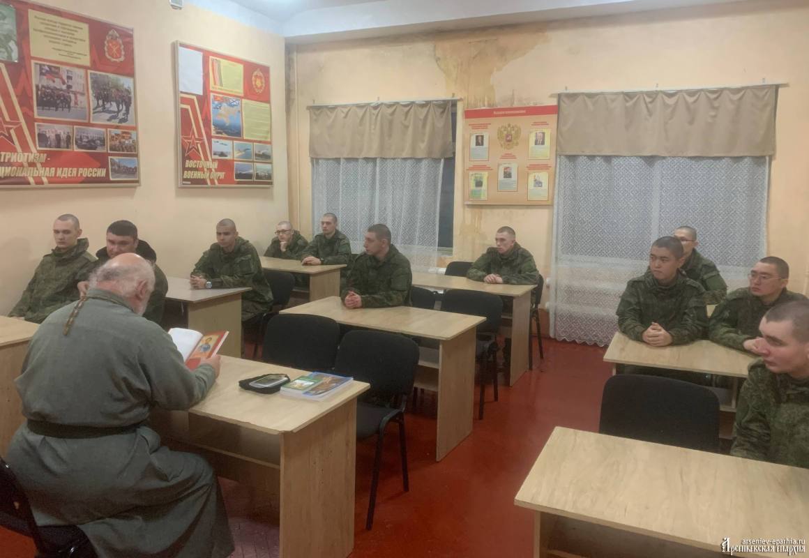 Иерей Константин Мироненко, ответственный за взаимодействие с вооружёнными силами и правоохранительными органами в Арсеньевской епархии, в рамках празднования Дня Защитника Отечества провёл духовно-просветительские мероприятия в подшефных ему воинских частях.