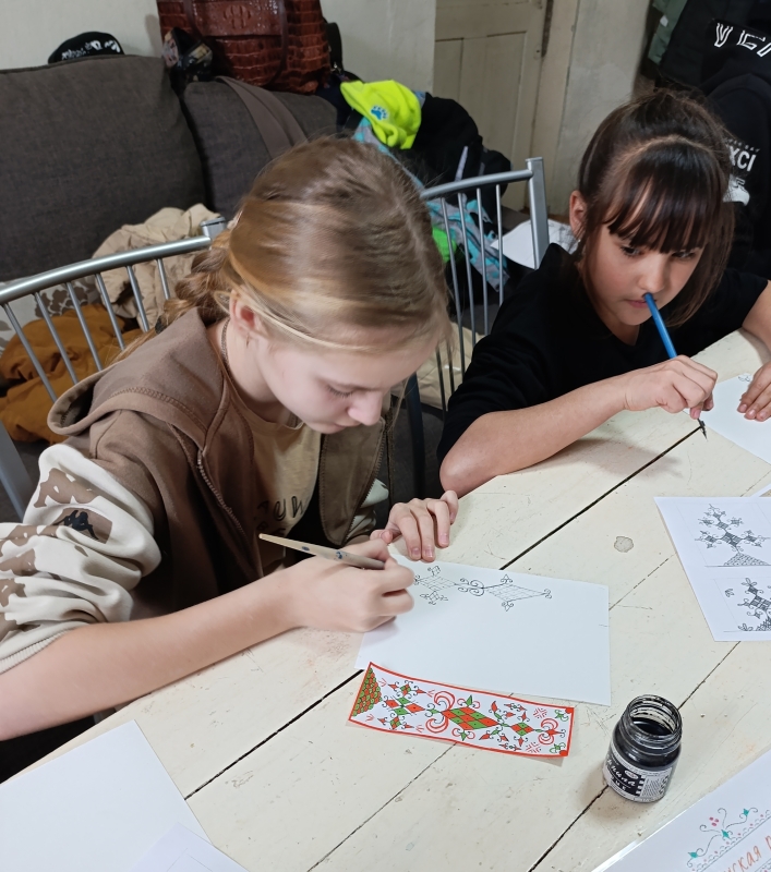 На прошлом занятии кружка «Сказочный букет» была особенная тишина. Она была наполнена тонким, едва слышным шуршанием – это наши воспитанники воскресной школы храма Архангела Михаила осваивали перьевые ручки.В пежемской росписи, которую ребята изучают, перо – это главный инструмент. Освоение пежемской росписи через перо – это путь от простого рисунка к каллиграфическому искусству. Удивительно наблюдать, как в руках детей рождаются сложные узоры, наполненные светом.