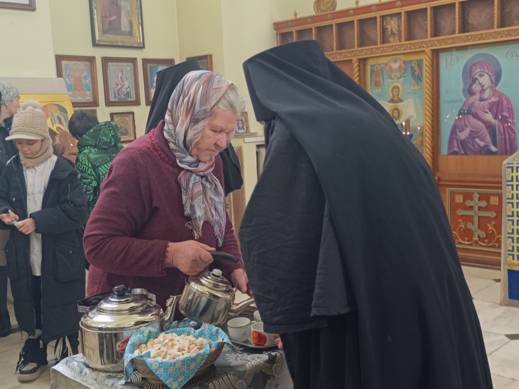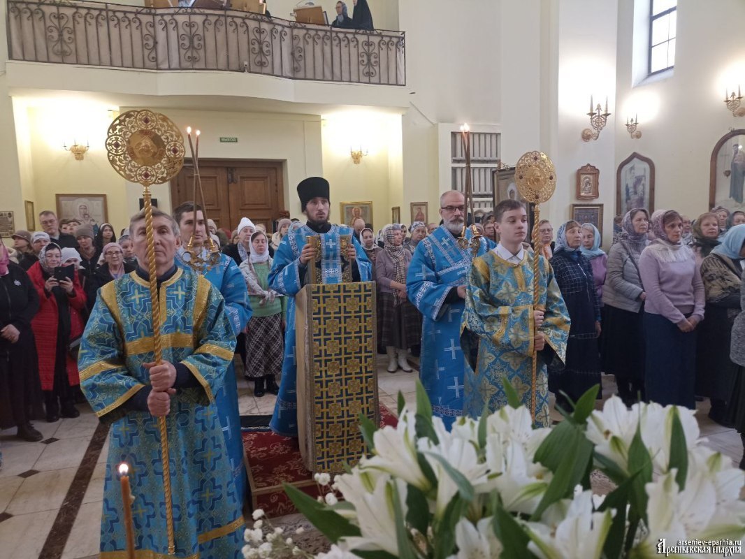 После заамвонной молитвы было совершено славление праздника, пропеты тропарь, кондак и величание.