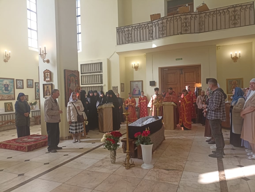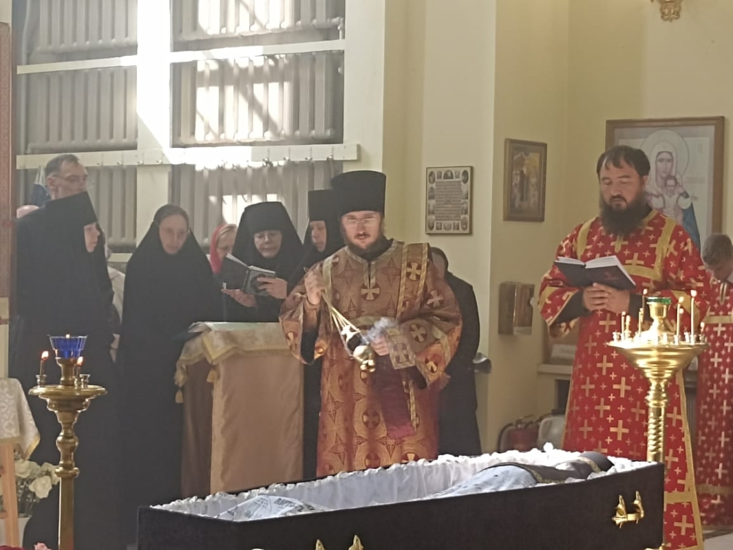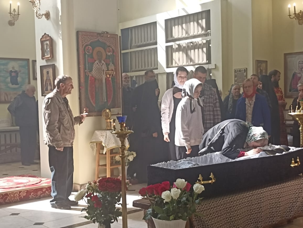 Чин отпевания возглавил иерей Кирилл Зиновьев в сослужении иеромонаха Власия (Афанасьева) и иеродиакона Досифея (Зыкова). За Богослужением также молились сестры женской монашеской общины Арсеньевской епархии, родные усопшей и прихожане храмов города.