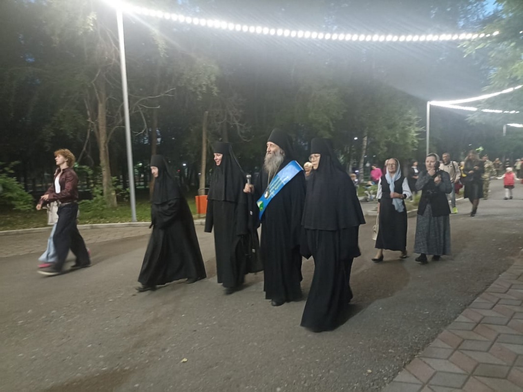 По окончании епископ Арсеньевский и Дальнегорский Гурий принял участие в презентации обновлённого светового решения центральной аллеи парка «Восток».