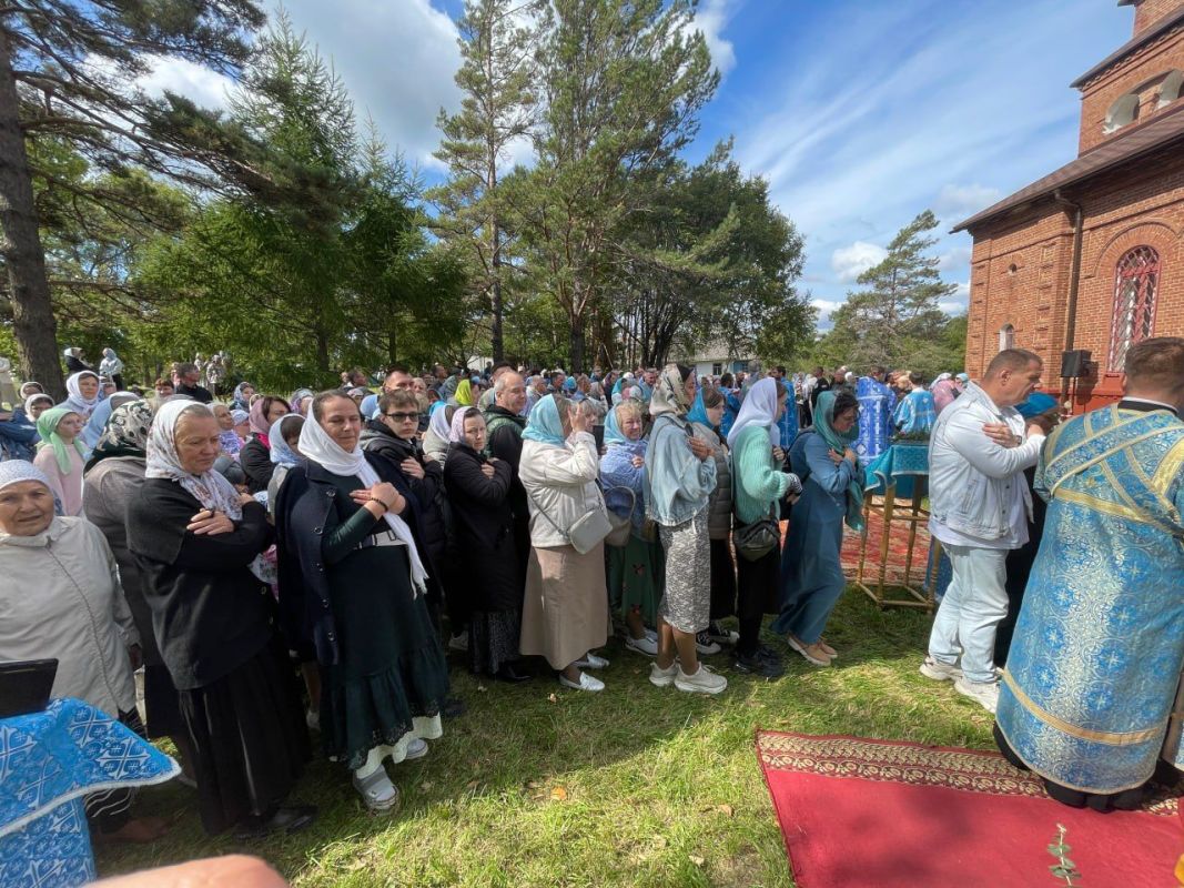 За Богослужением молились настоятельница монастыря игумения Варвара (Волгина), насельницы обители, многочисленные паломники и прихожане, в частности Арсеньевской епархии.