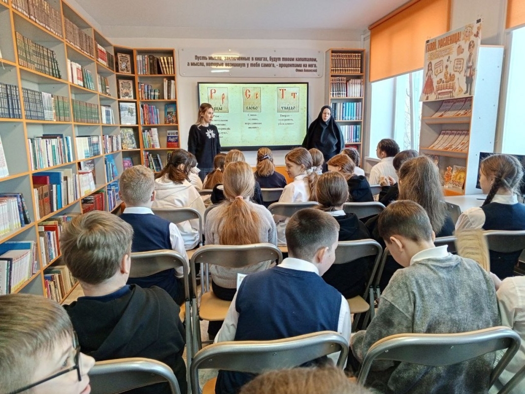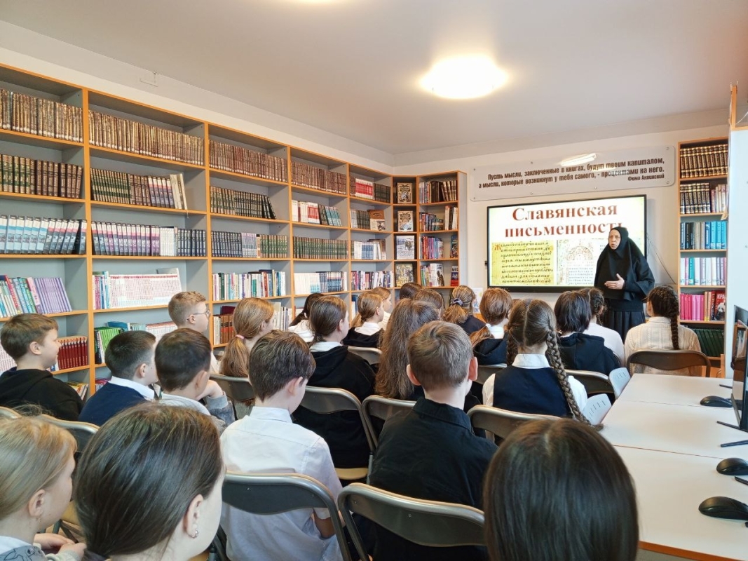 Так, школа №5 в качестве приоритетного вектора работы выбрала тему «Славянская письменность». Работа в этом направлении уже началась. Одним из ключевых событий первого этапа стала встреча юнармейцев с представителем епархии – инокиней Марией (Воробьёвой). В формате живого диалога она рассказала ребятам о том, как зарождалась славянская письменность.