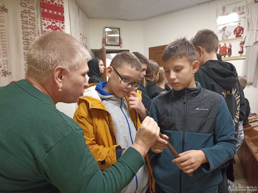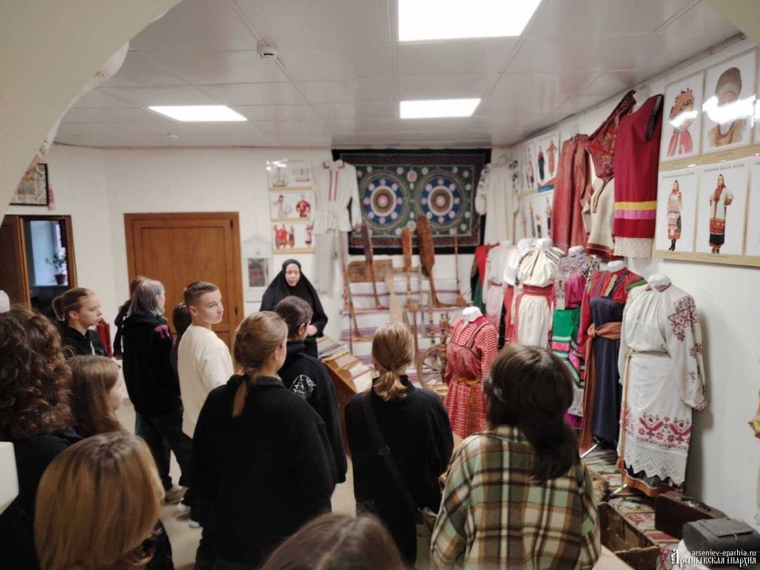 25 октября 2025 года гостями Духовно-просветительского центра г. Арсеньева стали гости из пгт. Кавалерово. В поездке приняли участие 15 юных художников и преподаватели художественного отделения: Ольга Литовченко, Лидия Котова и Екатерина Понуровская.Инокиня Мария (Воробьёва), руководитель грантовых проектов Арсеньевской епархии, провела для гостей цикл занятий: экскурсию по церковно-археологическому кабинету и иконописной мастерской с мастер-классом по иконописи, посещение Музея русской народной культуры, где ребята познакомились с коллекциями русского народного костюма, русскими прялками, кухонной утварью и др.