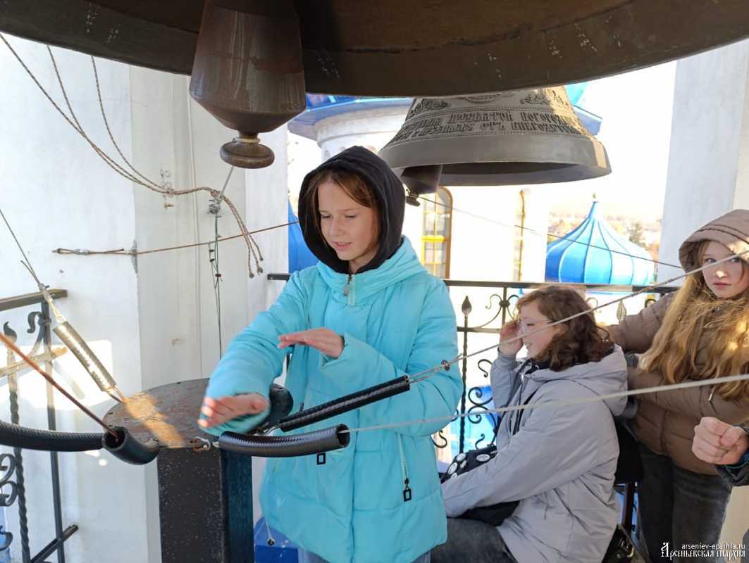 В завершение экскурсии дети и преподаватели посетили Кафедральный Благовещенский собор, поднялись на колокольню, полюбовались панорамой города и попробовали себя в роли звонарей.