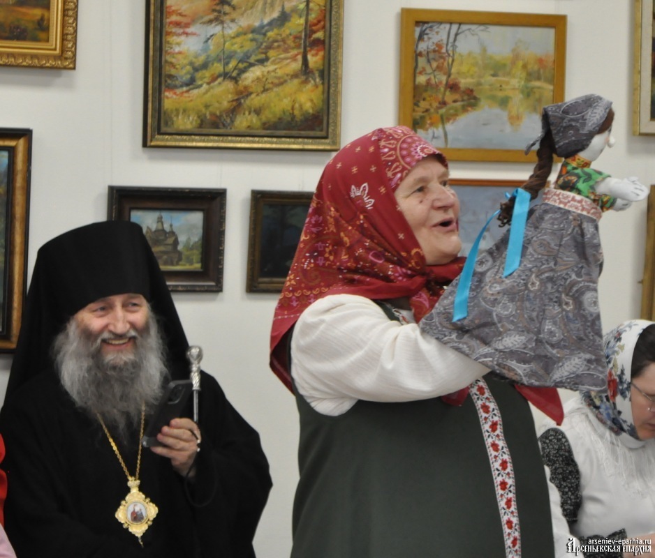 По традиции дети, взрослые и педагоги воскресной школы Благовещенского собора преподнесли владыке Гурию подарок – сшитую вручную куклу-грелку на самовар.