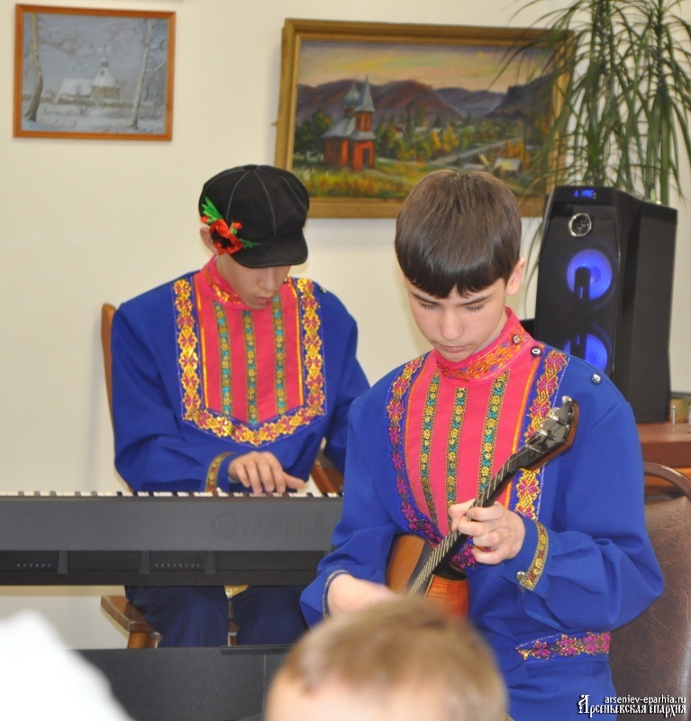 Особое внимание зрителей привлекли воспитанники воскресной школы храма Архангела Михаила г. Арсеньева. Богдан и Иван представили слаженный музыкальный номер, продемонстрировав мастерское владение инструментами. Кроме того, воспитанники этого прихода подготовили глубокую и поучительную постановку – притчу «Бусы из бирюзы». Эта история о доброте заставила каждого в зале задуматься о самом важном, добавив празднику нотку светлой тихой грусти и мудрости.